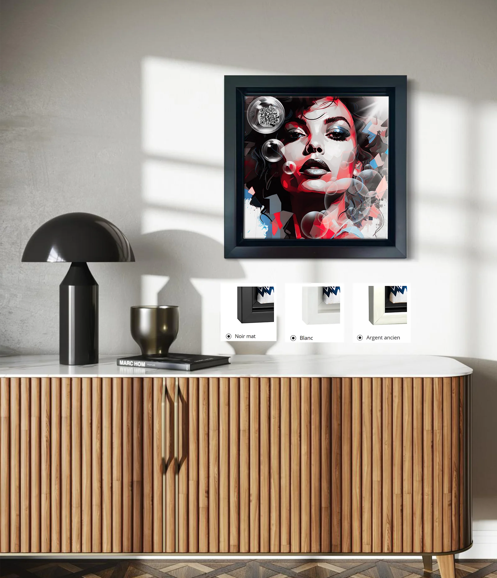 - Accrochez votre tableau et scannez son QR art avec votre smartphone.